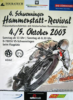 Der SAC Schwarzwälder Automobil Club Villingen-Schwenningen e.V. veranstaltet am 04./05.10.03 das 4. Hammerstatt-Revival im Industriegebiet am Flugplatz in Villingen-Schwenningen. Seit Oktober 2000 treffen sich hier Motorrad-Rennsportbegeisterte Fahrer und Fans zu Demoläufen historischer Solo- und Seitenwagen-Rennmotorräder bis Baujahr 1974.